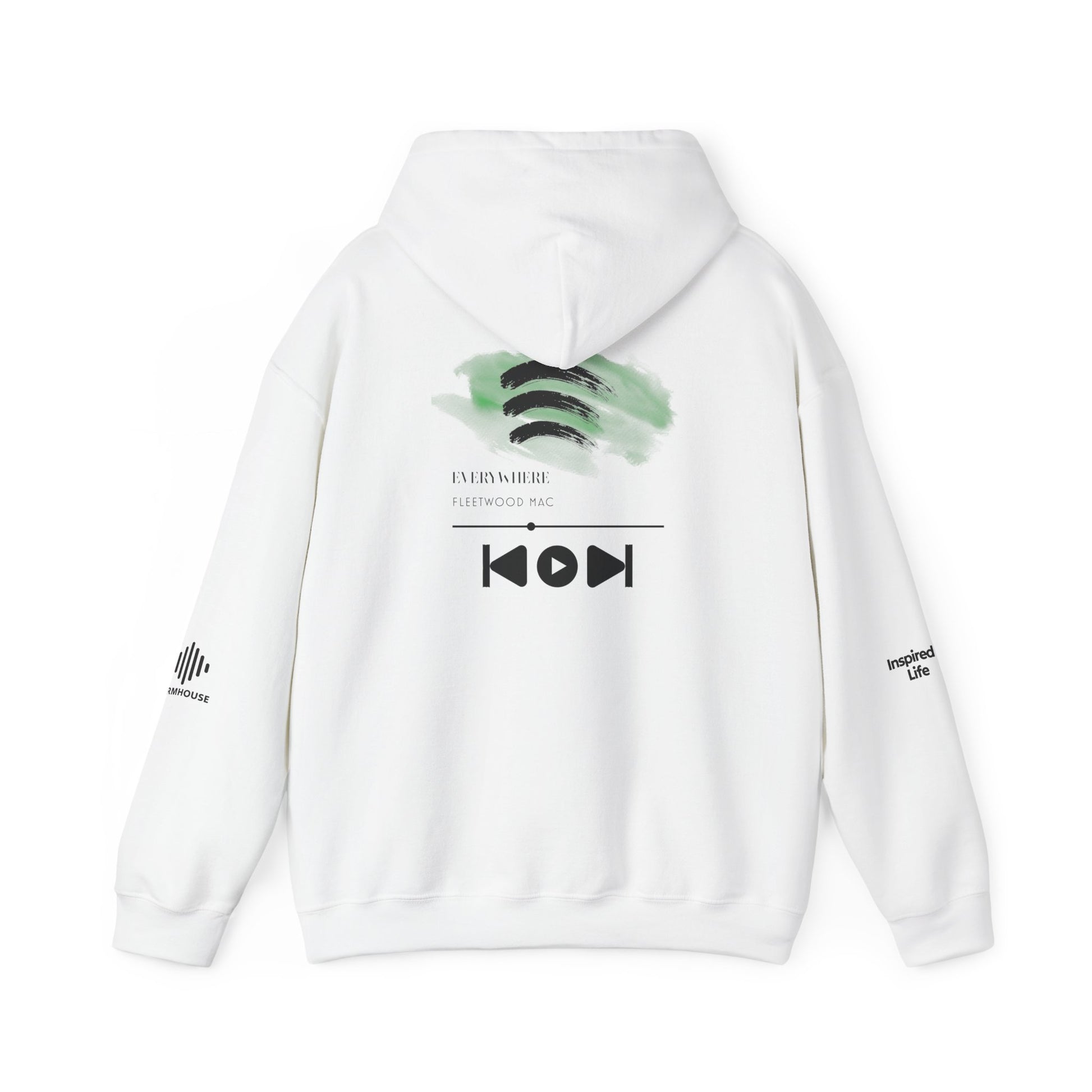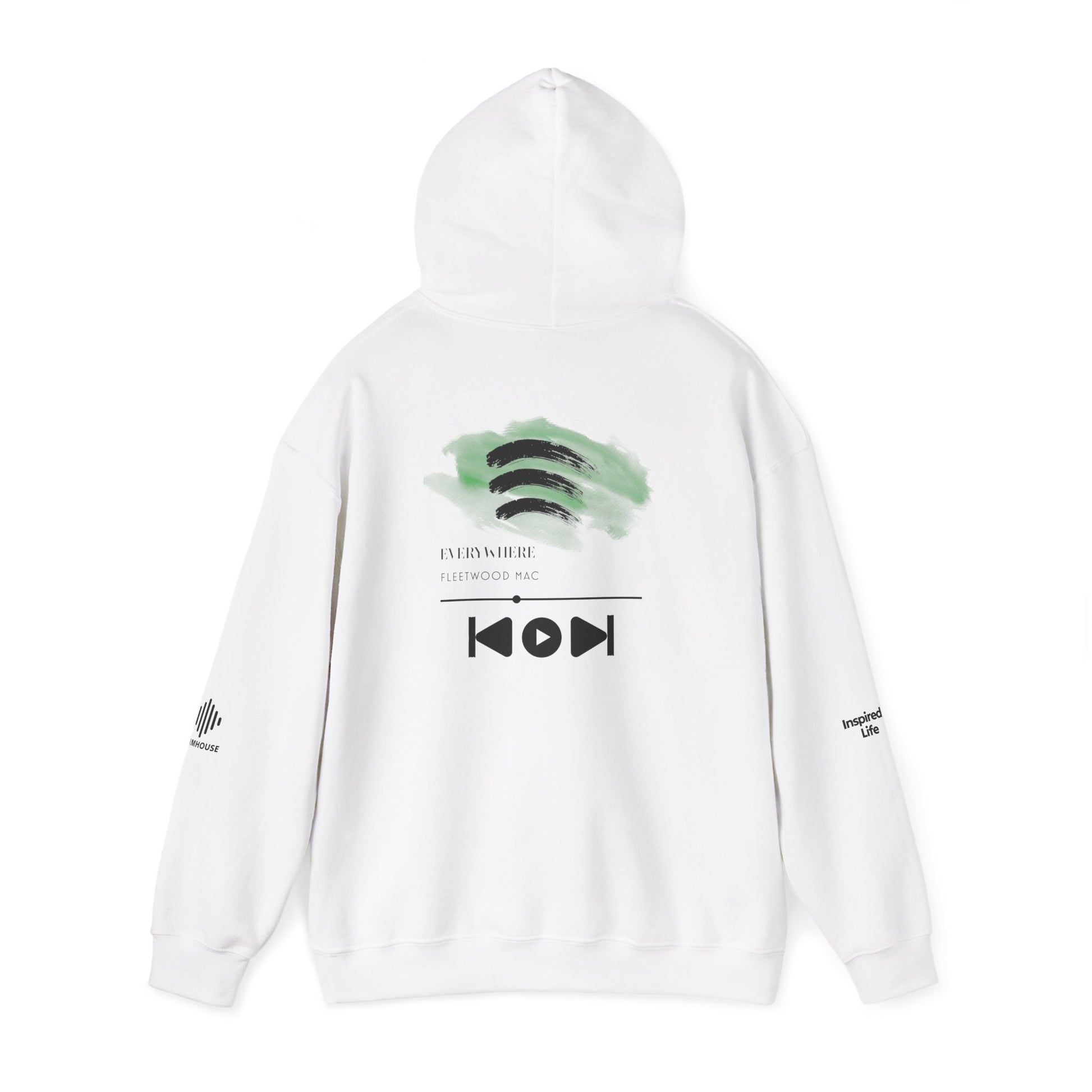 A cozy graphic hoodie featuring a Spotify logo and player icons with a song title. This hoodie gives off a casual and trendy vibe, perfect for music lovers looking for a comfortable and stylish option. Ideal for lounging at home, running errands, or attending music festivals.